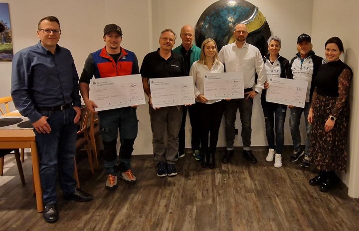 So sehen Sieger aus – vier heimische Vereine freuen sich über insgesamt 3.750 Euro für ihre Vereinskassen von der Kreisentwicklung des Landkreises Regen! Ihnen war es gelungen, bei der landkreisweiten Aktion „Engagement bewegt!“ die meisten Vereinsmitglieder zusammenzutrommeln, auf die Strecken der Heimat Trails Trophy am Großen Pfahl bzw. Großen Arber zu bringen und ihre Mannschaft fotografisch festzuhalten. Als Belohnung für ihr sportliches Teamwork und ihr ehrenamtliches Engagement überreichten ihnen die beiden Initiatoren der Aktion – Regionalmanager Tobias Wittenzellner und Maria Schneider von der Ehrenamtsförderung ARBERLAND – mit symbolischen Schecks ihre Geldpreise: Der erste Platz und damit 1.500 Euro gingen an den RC AVANTI Viechtach e.V. Die Viechtacher Wasserwacht reihte sich knapp dahinter auf dem zweiten Platz ein und ergatterte einen Gewinn von 1.000 Euro. Ebenfalls einen Platz auf dem Treppchen und 750 Euro sicherte sich der Kollnburger Verein Bayronman. Auf dem mit 500 Euro dotierten vierten Platz landete die Bergwacht Viechtach. Wittenzellner und Schneider freuten sich für und mit den Gewinnern und bemerkten mit einem Augenzwinkern: „Engagement lohnt sich eben immer!“